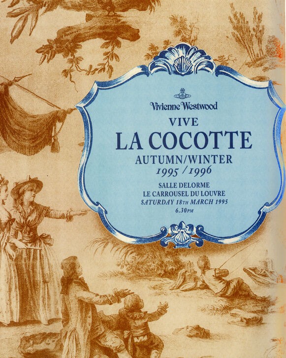 Anglomania, Autumn-Winter 1993/94 – At the time of Gainsborough the French became mad about English tailoring and the spontaneity of country charm. – The corset as the foundation for an evening dress. – Patriotism. – French Art through an English lens. – Affinity for European culture. – Naomi Campbell’s tumble in Elevated Ghilli heels. – Stout tweed. – Commissioning of the MacAndreas tartan as a tribute to her husband. – Vivienne Westwood Gold Label was born. – Double-breasted suits. – Woollen capes.